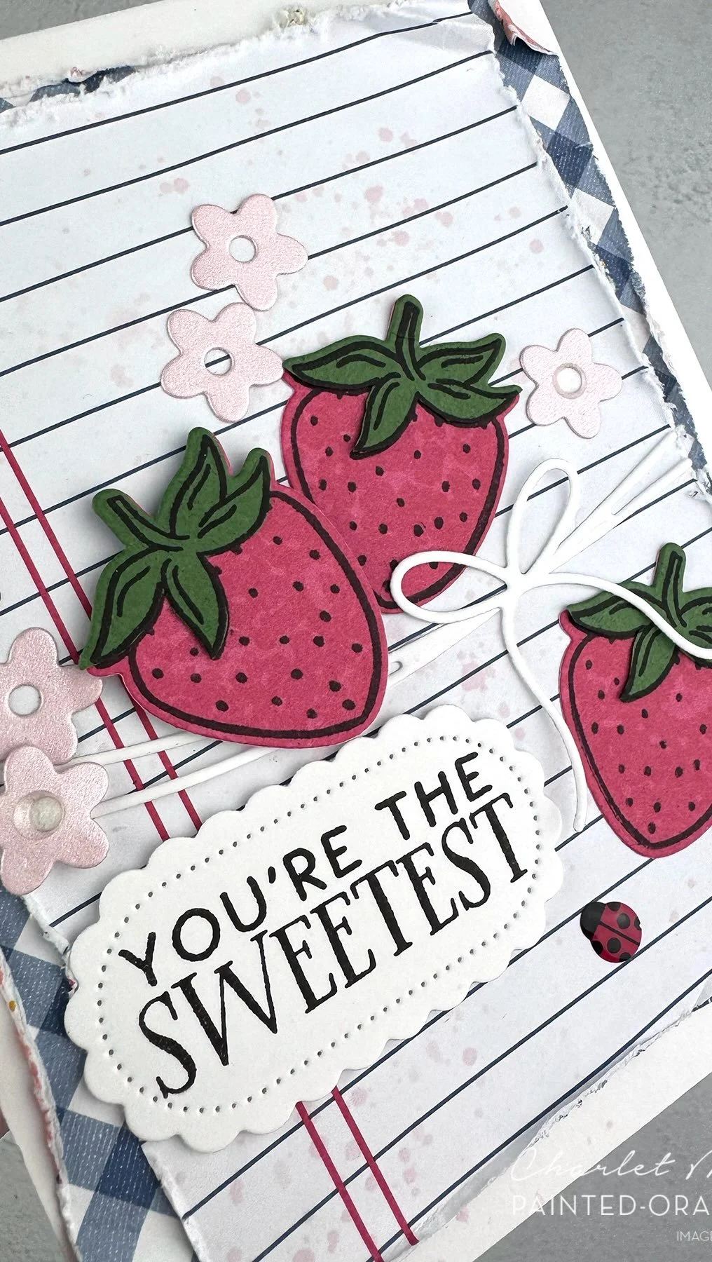 · Tuck greeting under right butterfly wing and adhere to cardfront using Stampin’ Dimensionals.