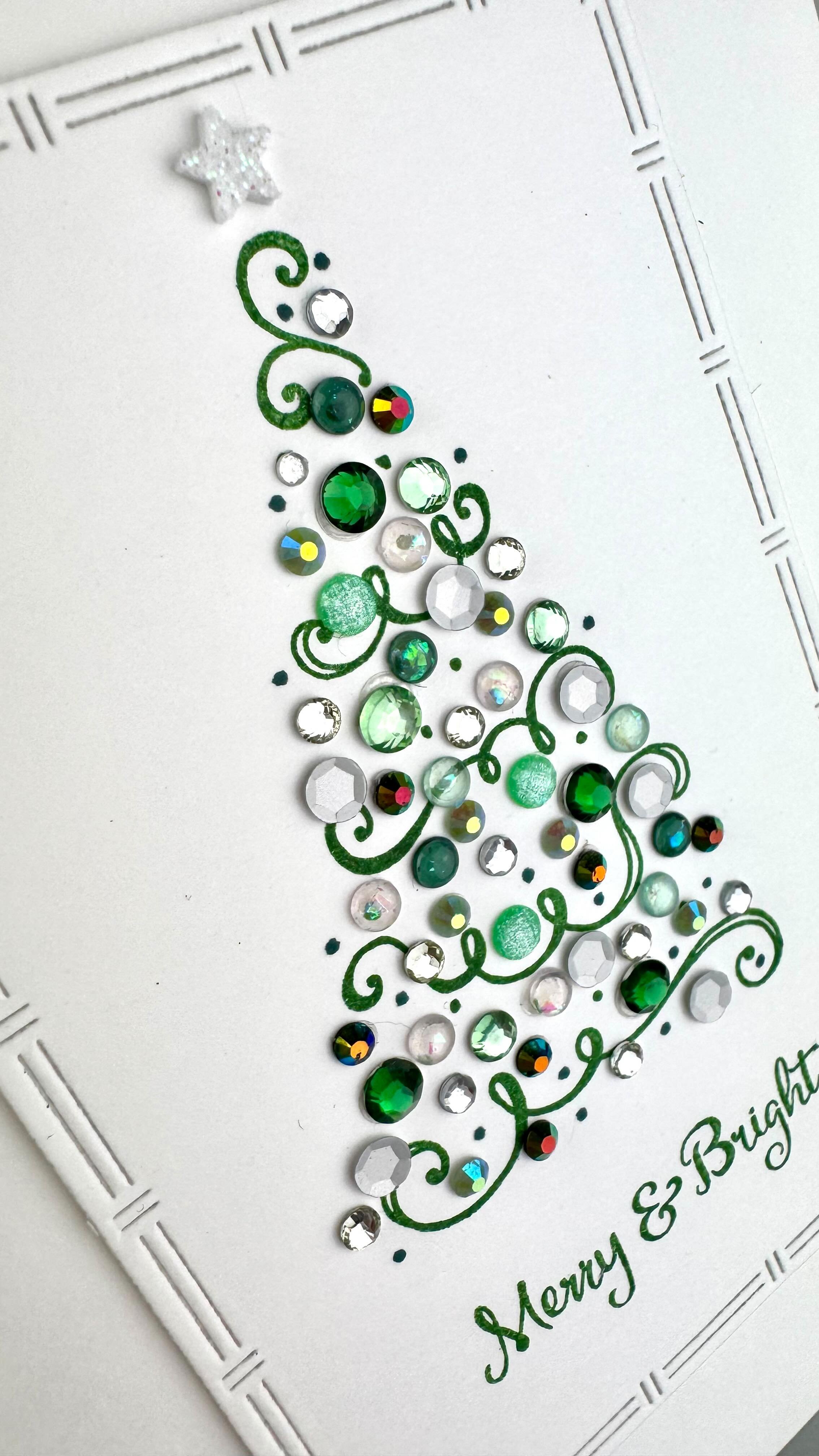 · Add Iridescent Rhinestones to card front. See card example for placement.