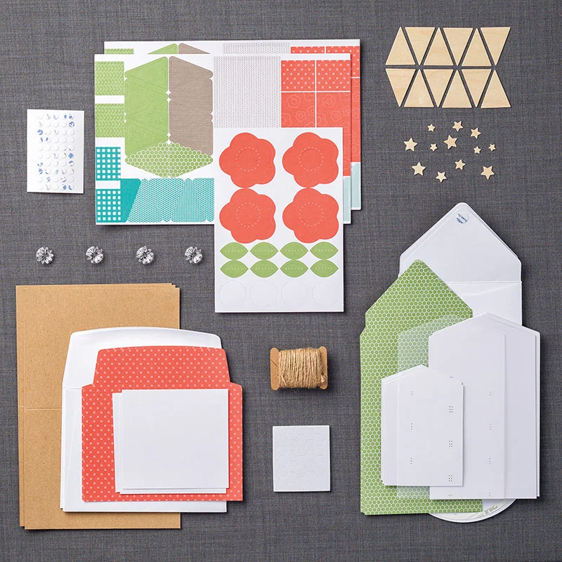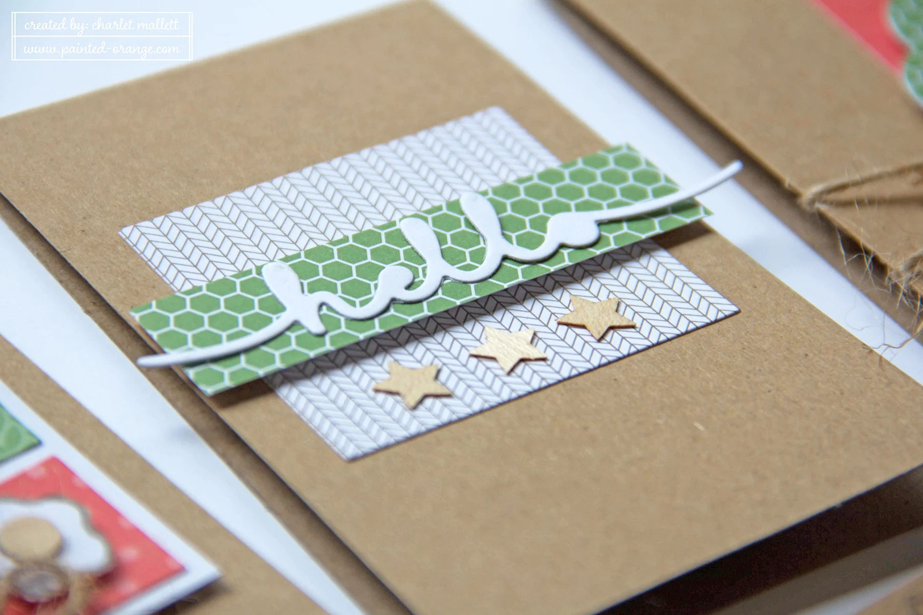 As you can I enjoyed making alternates with the supplies from this kit. The only pieces I ended up not using are the little triangles. I'll likely make a pennant or something with them later. Extra supplies added: Greetings Thinlets and Lots of Labels Framelits.