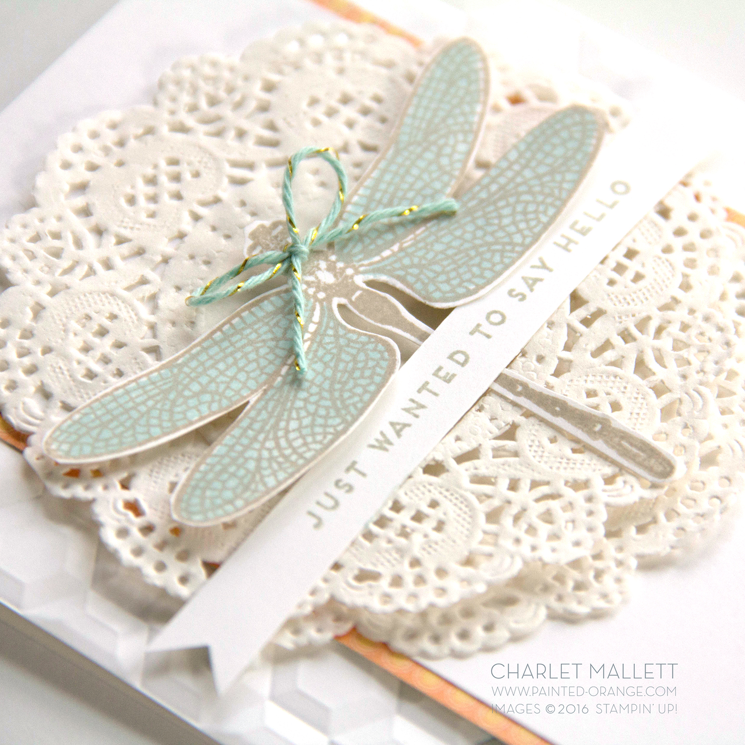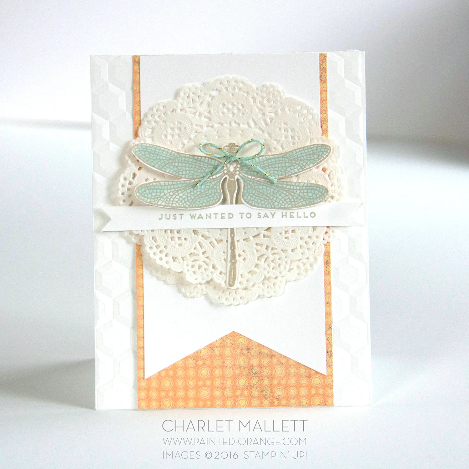 Detail view - Dragonfly Hello card using Dragonfly Dreams stamp set from Stampin' Up! 2017 Occasions mini catalog.