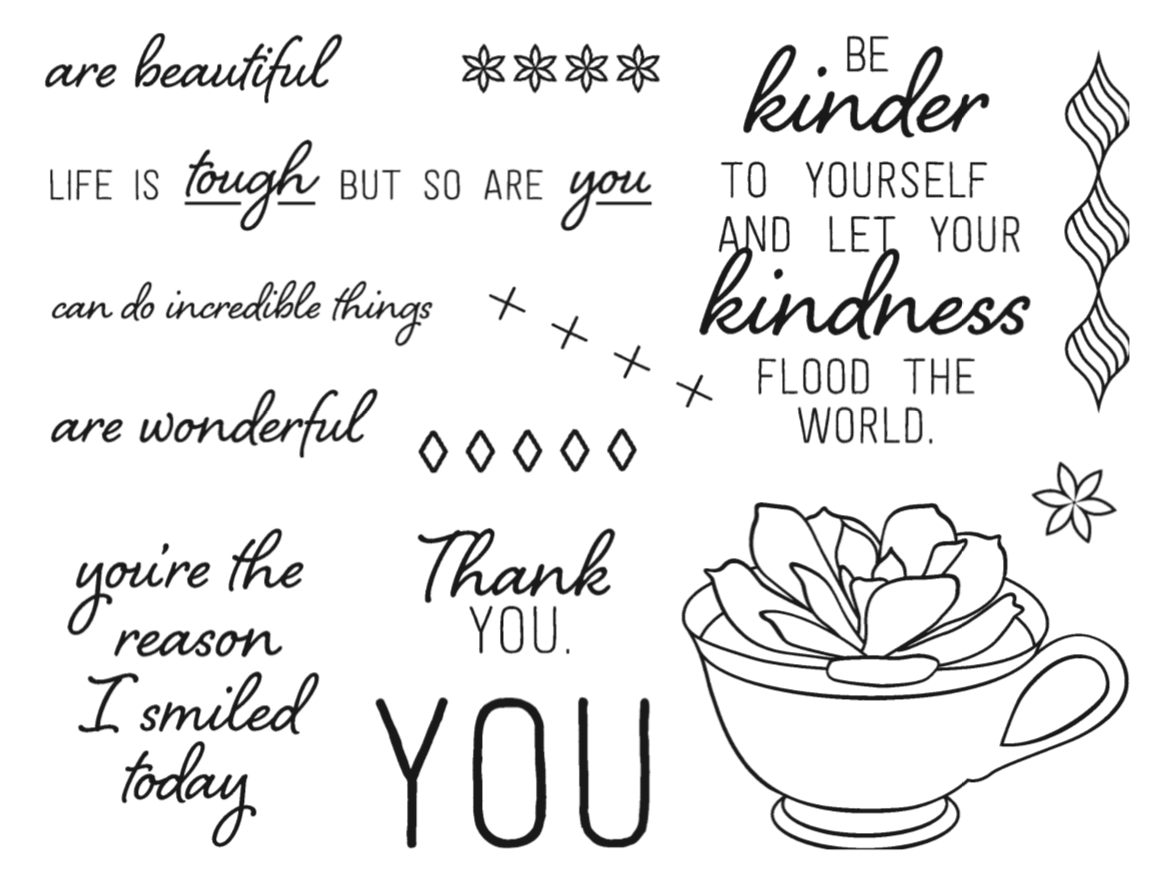 What a kit! If you love succulents you’ll be thrilled with the February Grown with Kindness Paper Pumpkin kit. I’m particularly fond of the stamp set (I think the kits are killing it lately with the stamp sets). Take a look at this amazing set. The sentiments are fantastic.