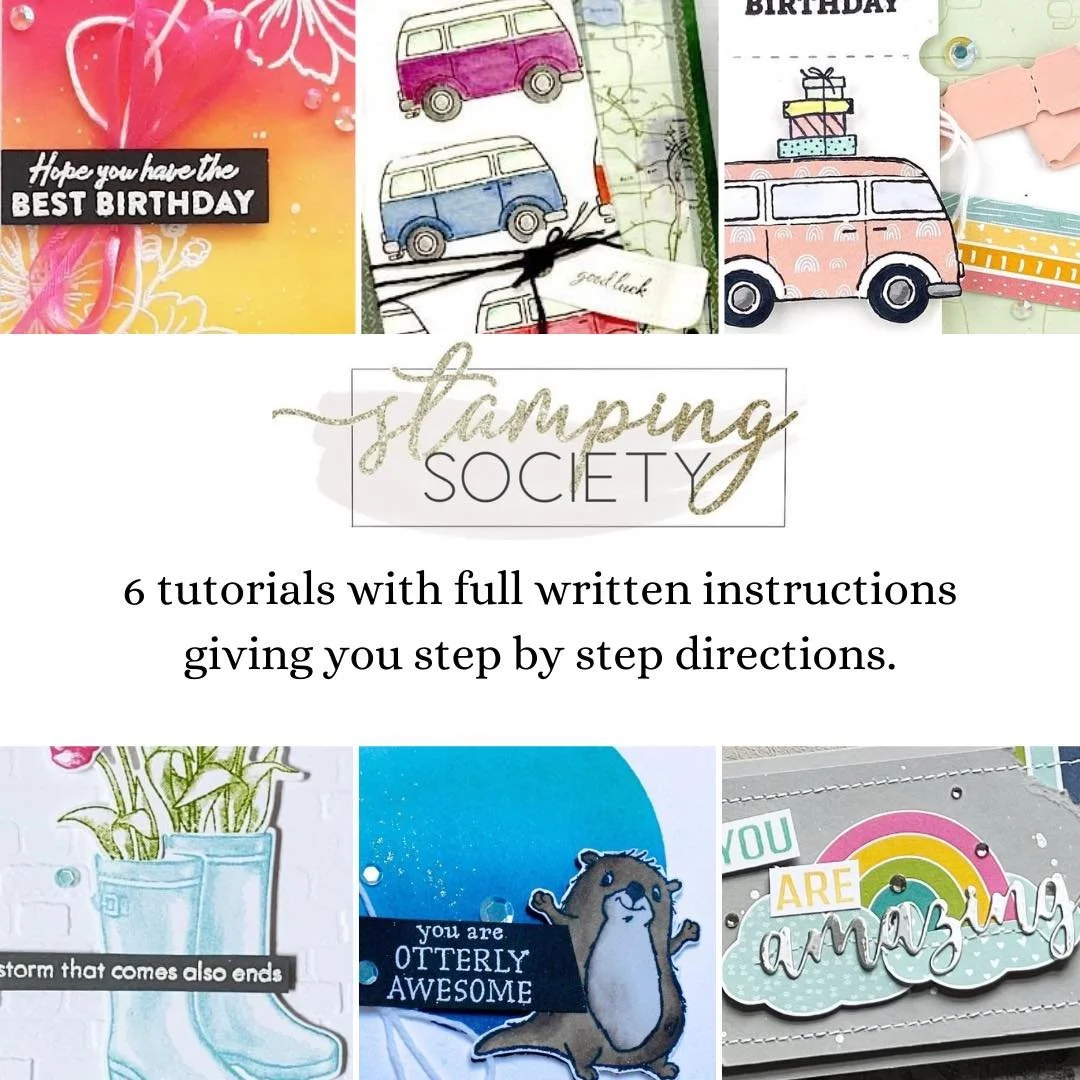 What is Stamping Society? We are group of international stampers who showcase an idea monthly through a blog hop and then offer the exclusive written instructions for that idea through an easy to navigate tutorial. The tutorial showcases all 6 ideas along with measurements, photos and a video. Details on how to get the tutorial at the end of this post.