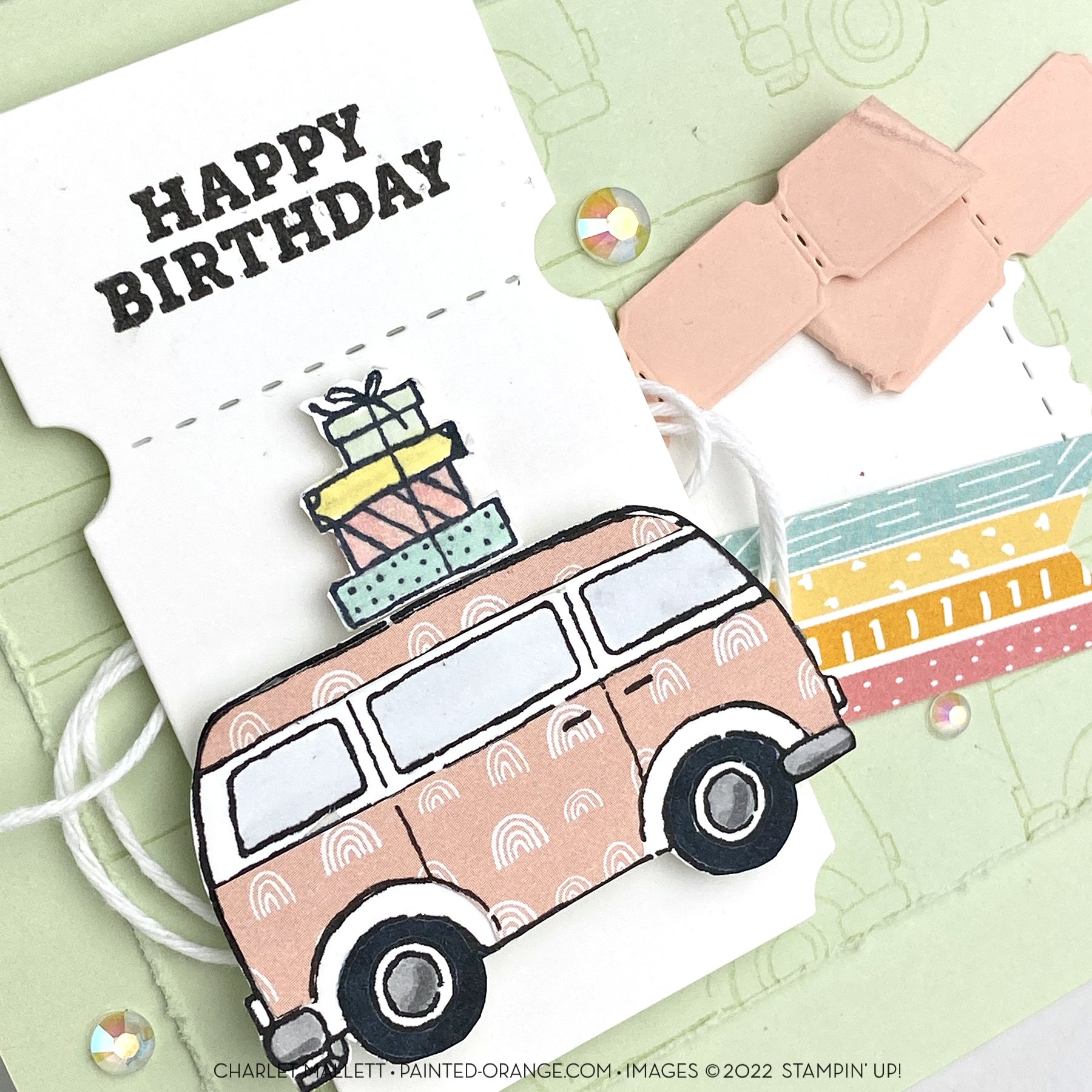 I have so many favorites from these two product releases, but for this project I am featuring the ‘Your Biggest Fan Bundle’ and the ‘Driving By’ stamp set. A full list of supplies can be found at the end of this post. Did you know if you purchase the ‘Your Biggest Fan Collection’ you can receive the Driving By stamp set free?! That’s a deal. In fact, ANY 50$ U.S. purchase gets a FREE Sale-a-abration choice gift. Want another bonus??!! Use this HOSTESS CODE DY37FBUZ when placing your order online and get another free gift from me in March.